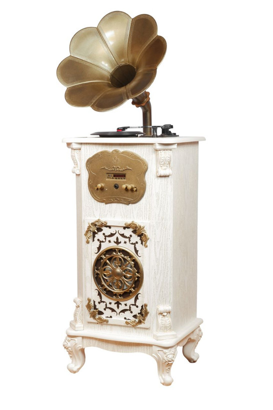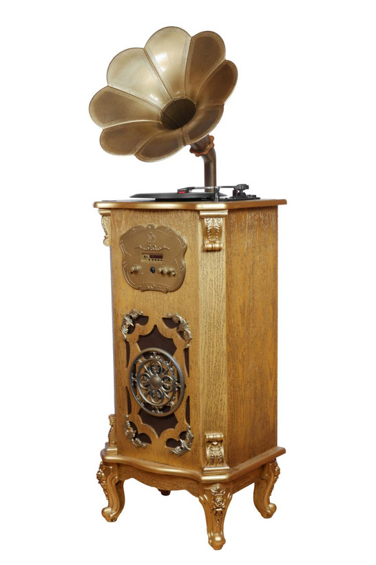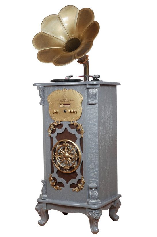 گرامافون مبله برلیانی سایز متوسط شیپور فلزی